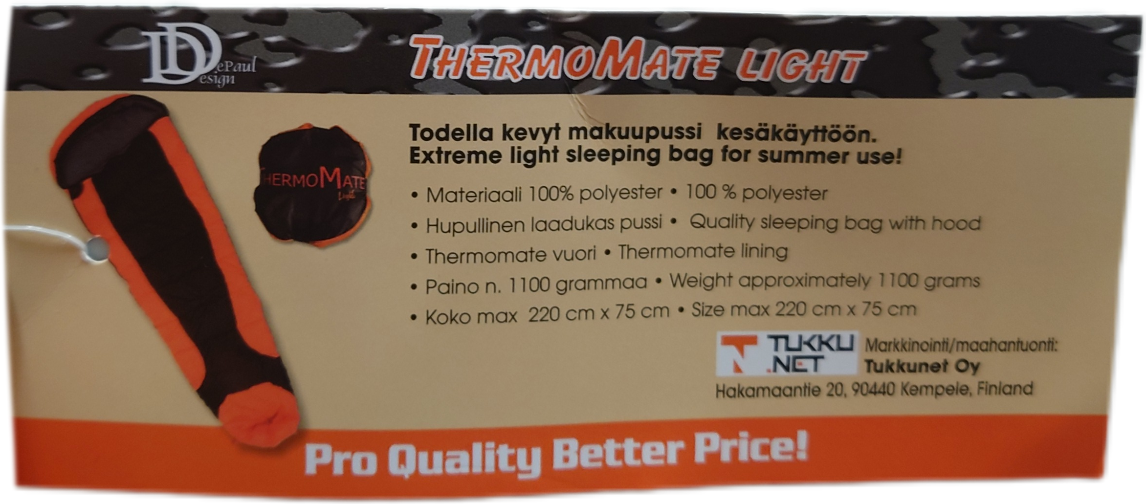 DePaul Design ThermoMate Light on todella kevyt ja helppokäyttöinen makuupussi kesäretkille, festareille ja mökkireissuille. Se on suunniteltu tarjoamaan mukavuutta ja suojaa lämpiminä vuodenaikoina, kun pakkaustilan ja painon minimointi on tärkeää.