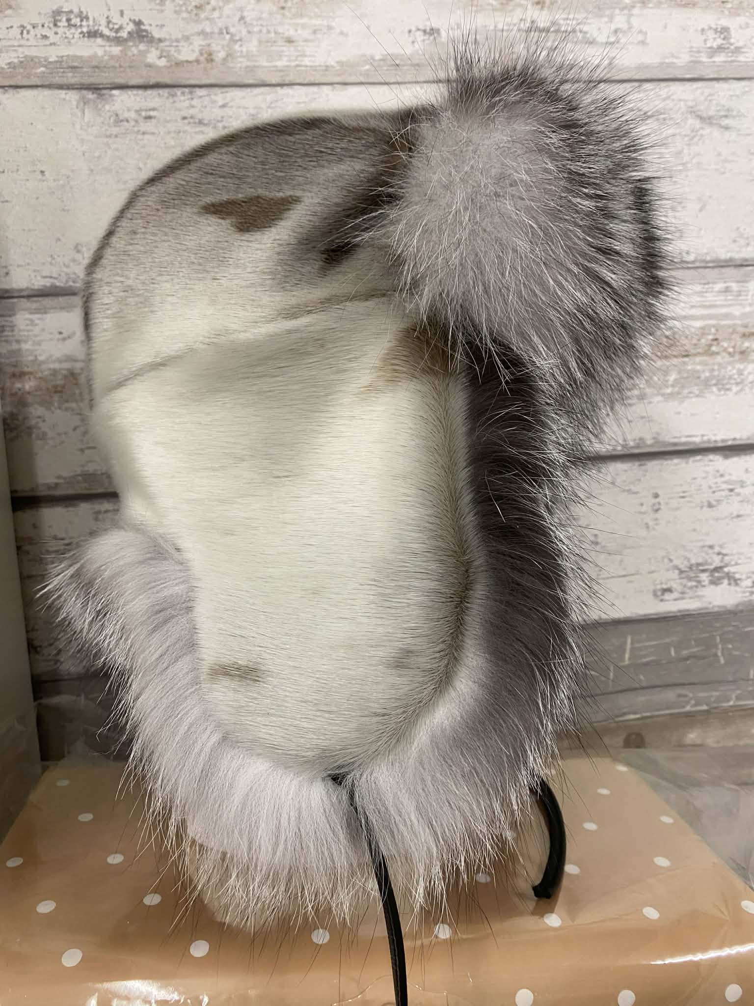 Kotimainen lämmin turkiskarvalakki kovaan käyttöön! Paksu hylkeennahka kupu, pitkät korvukset yltävät hyvin leuan alta kiinni. Turkis sinikettua. Vuorena tikkivuori lämpövanulla.