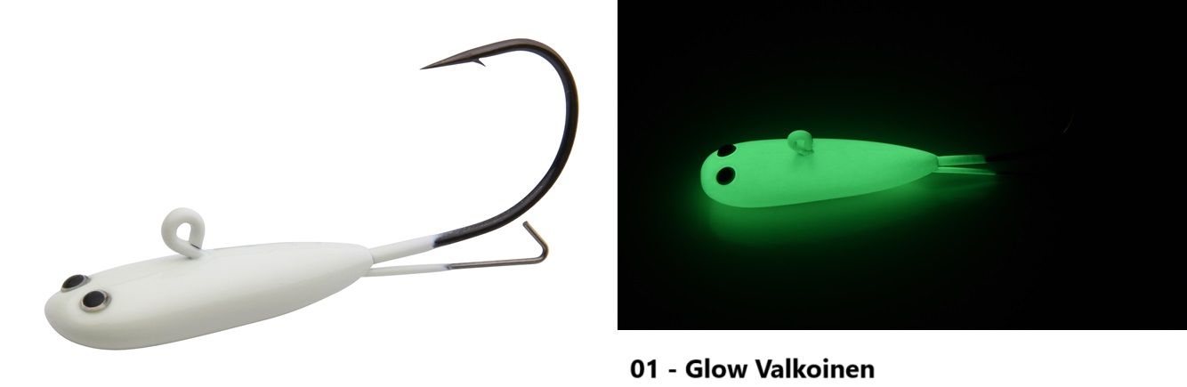 Kaksi Glow-väriä, kokonaan 01- valkoinen ja 02-valko-keltainen.