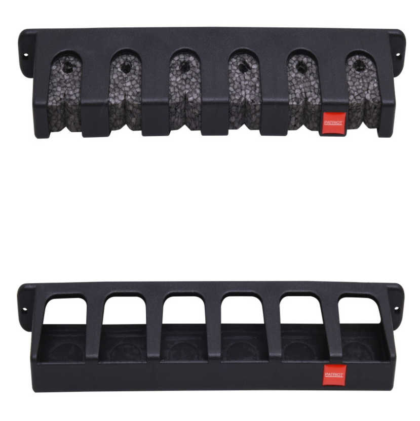Kätevä Patriot säilytysteline kuudelle vavalle. Patriot säilytysteline soveltuu lähes kaikenlaisten vapojen säilytykseen ja kuljetukseen esimerkiksi veneeseen, pakettiautoon, autotalliin tai varastoon. Tukevasta muovista valmistetussa telineessä säilytät kalastusvavat tukevasti paikoillaan ja naarmuuntumatta joustavan foam pehmusteen ansiosta. Telineen osat kiinnitetään ruuveilla halutulle etäisyydelle toisistaan.