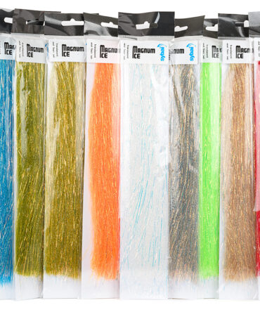 Riverbugin Lazer Flash -keinomateriaalista löytyvät yksiväriset sekä holo-kuidut. Näistä ohuista keinokuiduista saat tehtyä esimerkiksi tinselit tai voit lisätä näitä siiven joukkoon tuomaan lisää välkettä. Edullinen materiaali, josta on paljon hyötyä perhoissa. Kaunis ja kimalteleva materiaali putkiperhon siipeen.
