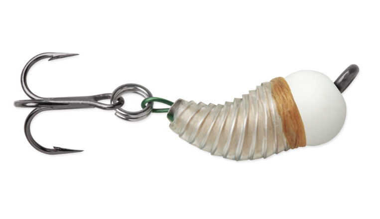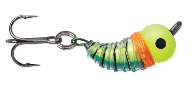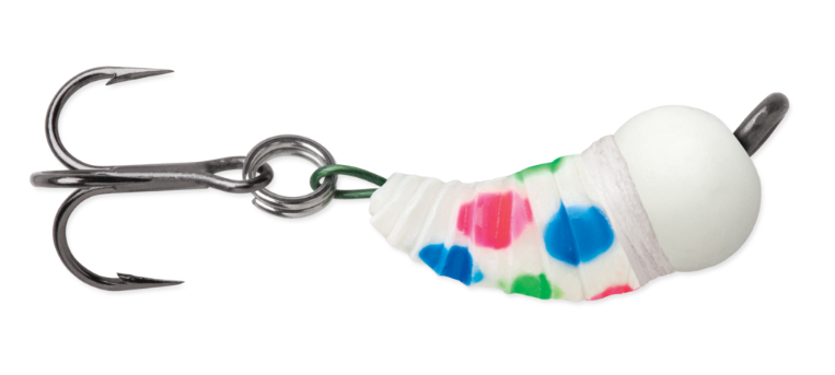 Tartuttavuus paranee kolmihaaran ansiosta. Volframista valmistettu kuula tuo riittävästi painoa, jotta pilkkiin saadaan hyvä tuntuma. Houkutteleva, toukkamainen muotoilu.